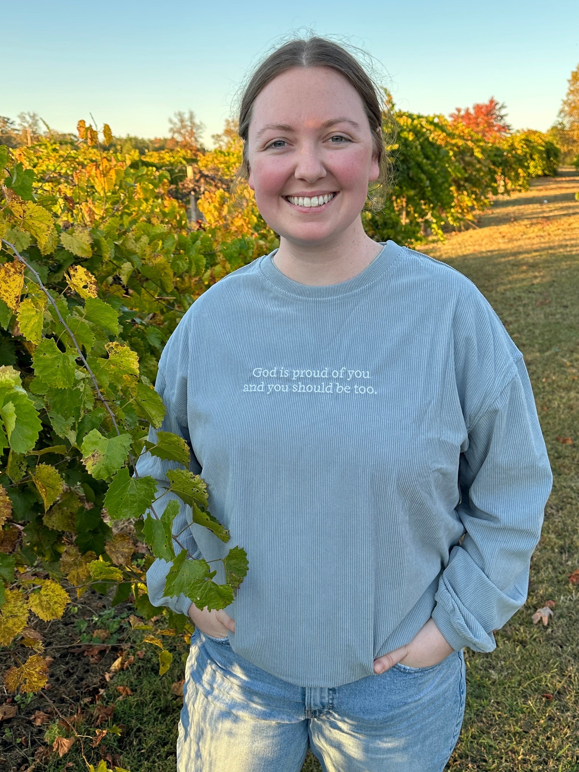 “Proud of You” Corded Crew - Vintage Blue