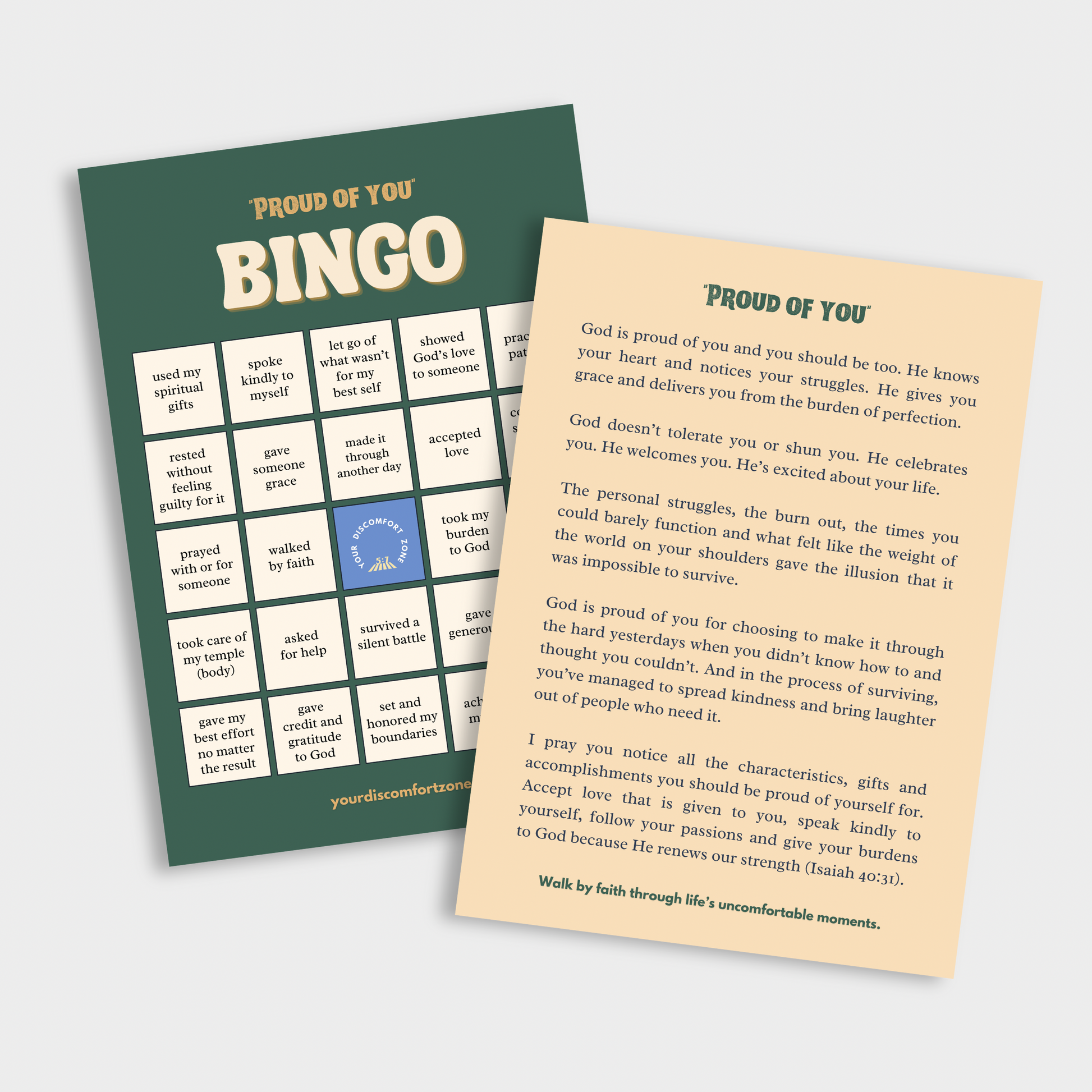 Each corded crewneck includes one free Proud of You Bingo card.